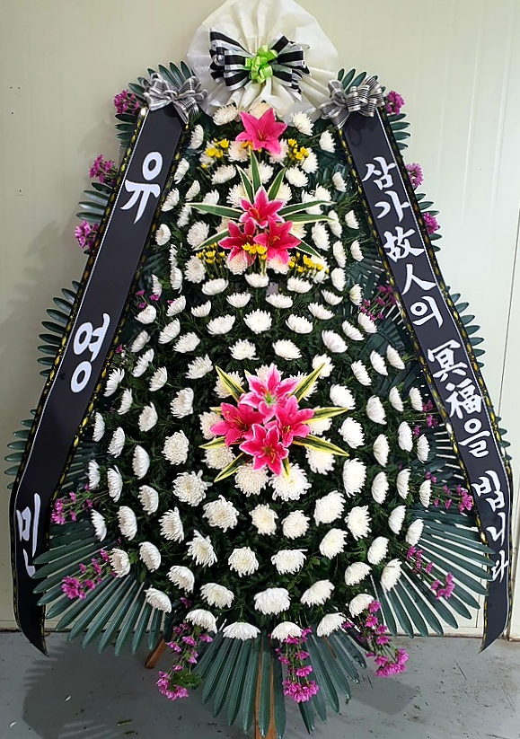 검정리본 근조 3단 화환 > 실시간 배송사진
