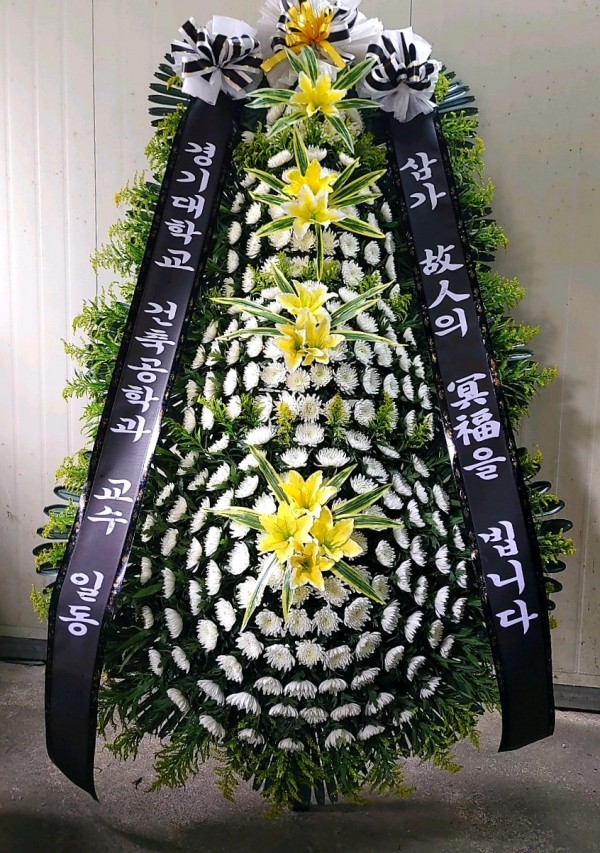 검정리본 근조 4단 화환 > 실시간 배송사진