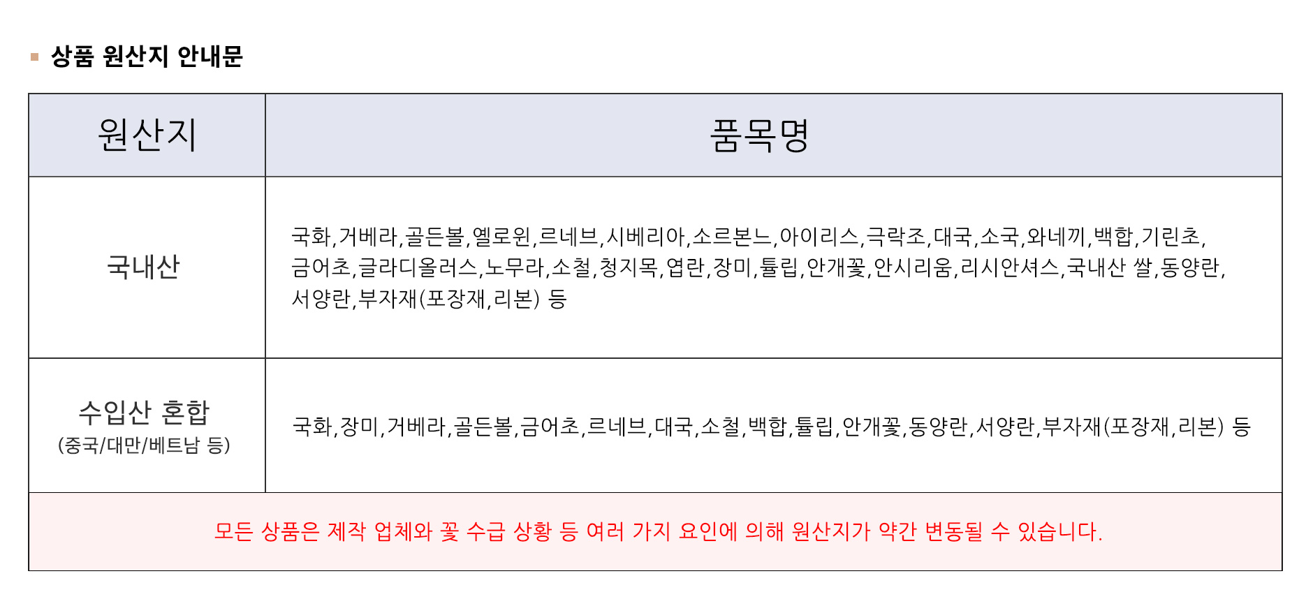 * 고급/상품/최상품의 차이는 꽃의 양(풍성도)입니다.