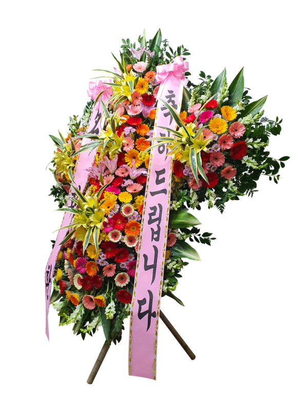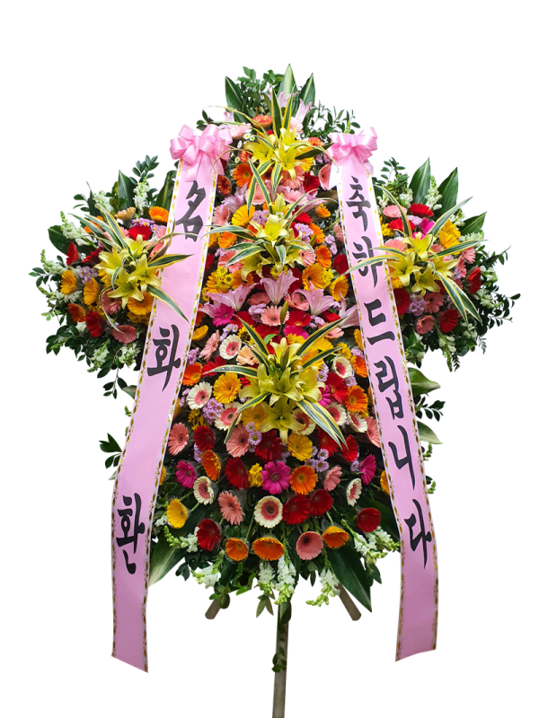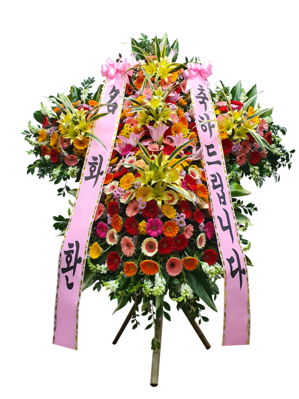 [축하상품] 생화나 조화로 상품을 제작하여 축하를 표하는 곳에 쓰입니다.